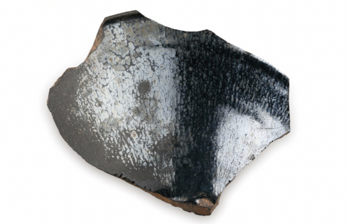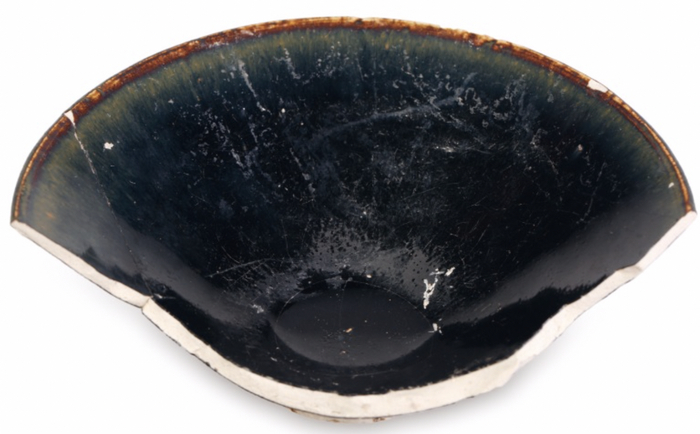 工艺水平较高的纯黑釉面,虽然没有使用“细白胎”工艺,但胎质洁白紧实,釉面平整润泽。