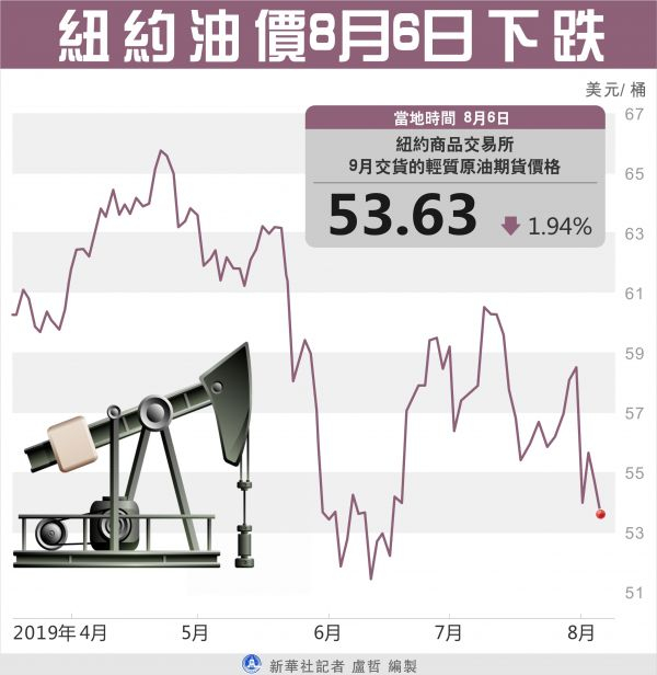 图表:纽约油价8月6日下跌 (新华社记者 卢哲 编制 )