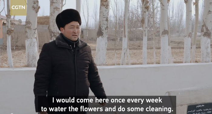 买合木提是示亚克瑞克村的村干部,他向CGTN记者介绍道,这片新生态公墓,是农民们自己帮忙建的,成本费只有1,000元。