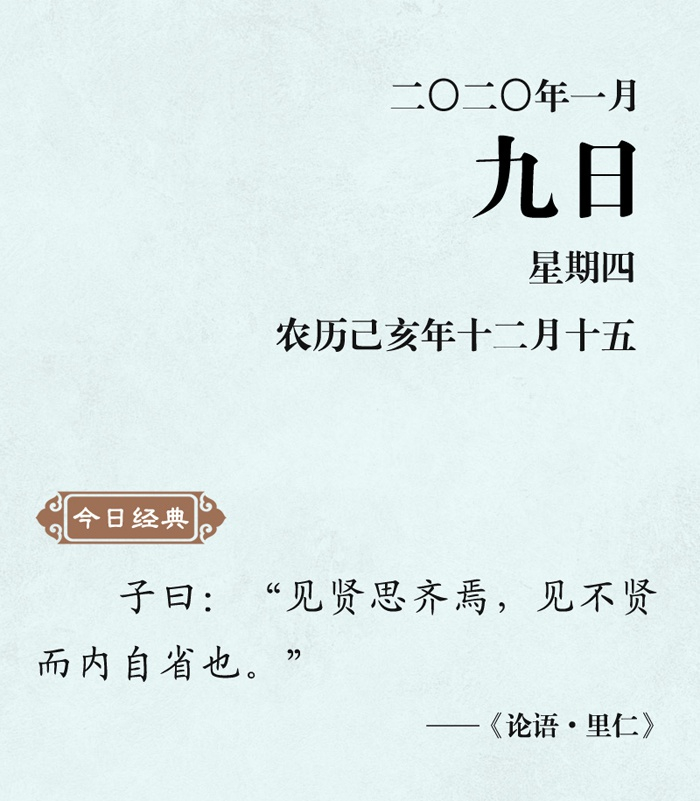 孔子说:“看见贤人,便应该想向他学习;看见不贤的人,便应该自己反省,(有没有同他类似的毛病)。”