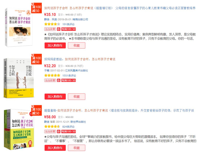 和青豆书坊的编辑们聊过后,记者对这本被“碰瓷”的《如何说孩子才会听,怎么听孩子才肯说》有了更多了解。它在家庭教育领域一直是本口碑很好的畅销书,可以称作是家教图书市场的大IP。