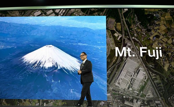 1月6日,美国拉斯维加斯,丰田公司社长丰田章男在CES上透露,公司计划在富士山下建造一座“未来城市”。(法新社)