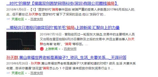 此前,耿直哥就曾在介绍向心的报道中介绍过向心被卷入诈骗案的事情。孙天群在大陆牵扯到疑似“诈骗”案件的信息,百度搜索引擎上也可以很容易地检索到。