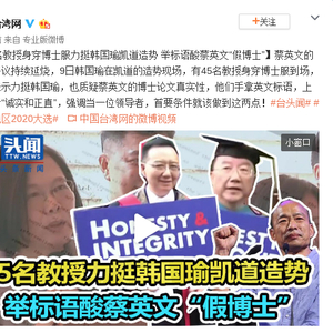 视频|45名教授身穿博士服力挺韩国瑜凯道造势 举标语酸蔡英文“假博士”