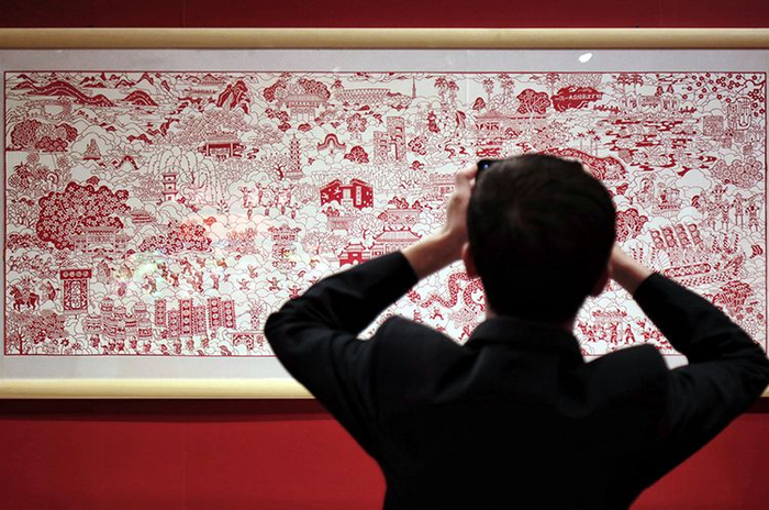 新京报讯 1月10日,“秋色花街映乾坤——侨乡佛山非遗文化展”在位于东城区草园胡同的中国华侨历史博物馆开幕,展览聚焦佛山丰富的非遗资源,分为“佛山特色民俗”、“非遗文化”和“食在佛山”三大板块,展出佛山剪纸、灯彩、木版年画、彩扎狮头、石湾陶塑、粤剧、武术以及香云纱等多个项目。