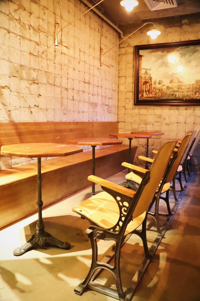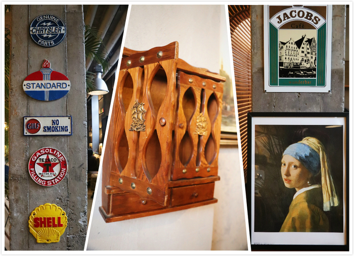这里来自20世纪的中古家具,以及大到钟表、电话,小到刀叉、餐盘等日用杂物,皆由主理人游历世界各地带回。还有部分座椅拆自老旧的礼堂坐席,风格古朴,历久弥新。