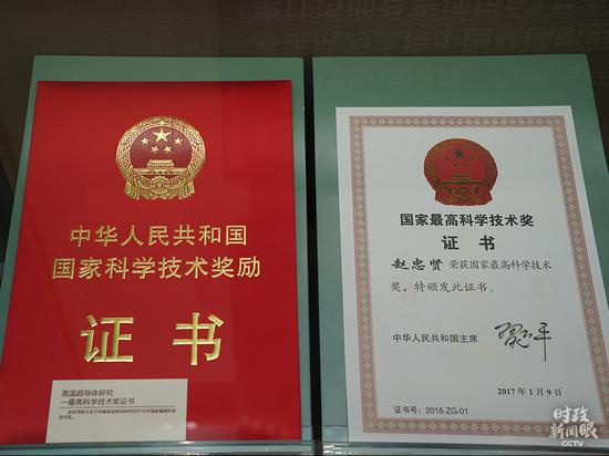 △中国科学院物理研究所赵忠贤院士是2016年度国家最高科学技术奖获得者。由习近平签署的这张获奖证书曾在庆祝中华人民共和国成立70周年大型成就展上展出。