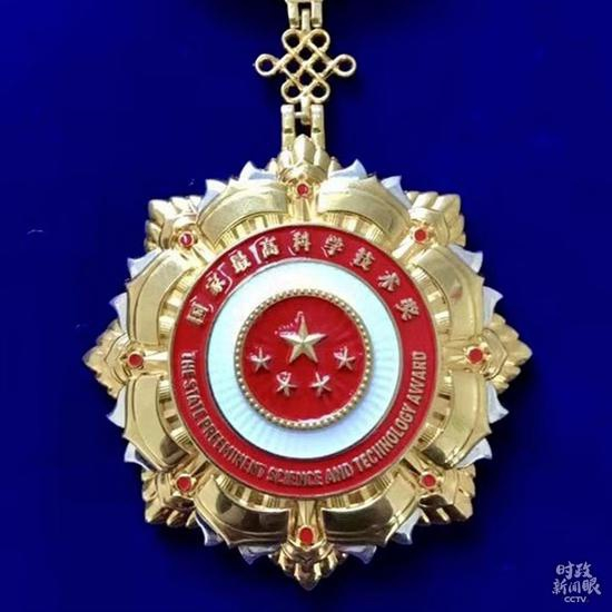 △国家最高科学技术奖奖章中心图案为五颗五角星,象征国家奖;外圈采用飘带、牡丹花和翅膀等视觉元素,包含荣誉、吉祥和科技事业展翅高飞等美好寓意。(国家科学技术奖励工作办公室供图)