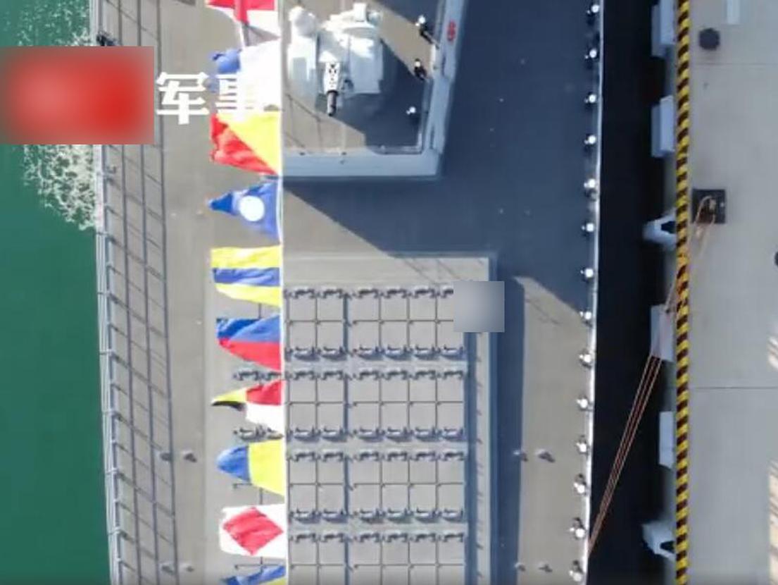 12日上午,海军055型驱逐舰首舰南昌舰归建入列仪式在青岛某军港码头举行。