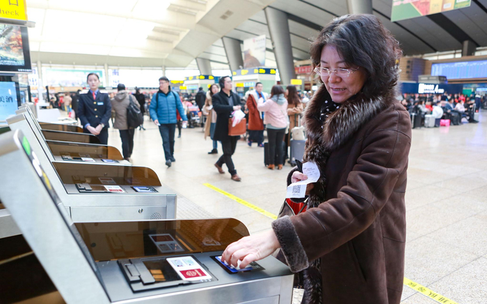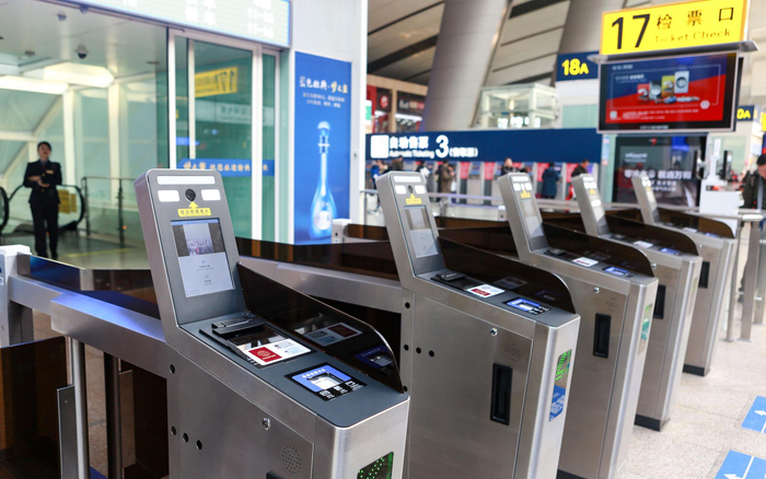 目前,北京南站始发的京津城际、京沪高铁等线路已全部启用电子客票。已购电子客票的旅客直接凭购票时使用的身份证原件,经人脸识别后自助快速进站。记者了解到,这批新上线的设备比此前在京津城际场运行的老款闸机更先进,人、证识别速度要快上1秒左右,同时还支持护照等证件的识读功能。