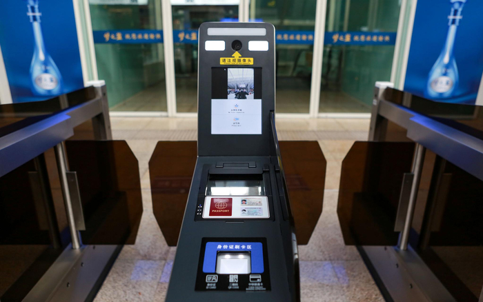 今天(1月12日)下午,记者在北京南站候车大厅内看到,众多检票口前的闸机都进行了更新,变成了一种银灰色的新款实名制检票闸机,设备的上方是一块带有摄像头的显示屏,下方是护照识别区和身份证、电子客票二维码识别区。