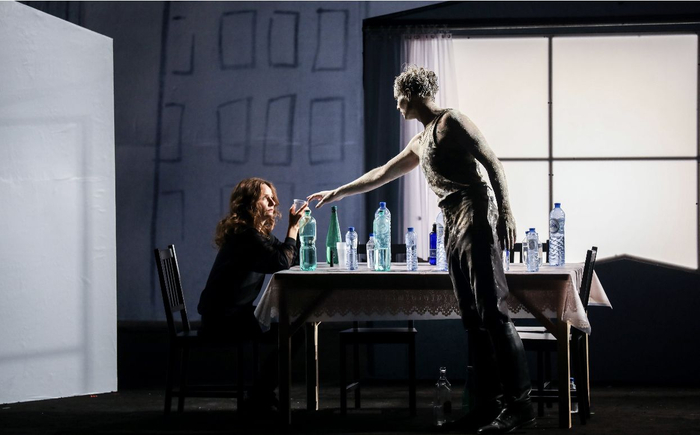 立陶宛导演里马斯·图米纳斯在俄罗斯瓦赫坦戈夫剧院排演的《叶甫盖尼·奥涅金》2018年亮相乌镇戏剧节,2019年在北京首演。这是一部充满诗意与想象的杰作,极为深刻地揭示出俄罗斯精神生活的内涵。塔吉亚娜成为了剧中的真正核心人物,她的灵魂世界纯洁而高贵。导演通过两个演员来扮演奥涅金,强调了这个男性人物的复杂性,也暗示了奥涅金精神世界的分裂:一方面,他厌倦上流社会的空虚生活,另一方面,内心中却仍然残存着真挚的感情,对自己的荒唐生活有着悔恨与自省。舞台后方的那面巨大镜子,同样映照出俄罗斯生活的分裂:一面是乡村生活的淳朴安宁,另一面则是粗暴的黑暗。