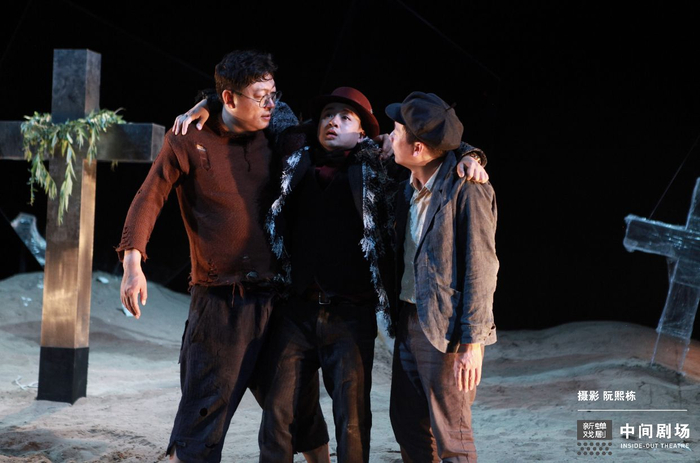贝克特剧作、易立明导演、他和团队新译、新蝉戏剧和中间剧场联合制作的《等待戈多》,是一次告别了中国演员不知所云、干瘪符号化演出史的剧场创作。译本恢复了曾被“雅化”的调侃,舞美的精神概括力强悍:墓地,歪斜的十字架,破碎的镜子,直接彰显剧作隐喻的人类境遇并将哈姆雷特命题延展到戈多——“上帝已死”,人类理性破碎,再也无法完整地自我认知并认识世界。《等待戈多》是意义不可穷尽的剧作,人物几乎每句台词、至少是每段独白,都需要《圣经》和各式现代西方哲学的索引。对于中国人来说,理解尤其艰难。易立明团队以十个月时间研读剧作和相关译著,致力于表演之前的“意义清障”,并以中国人的生命-历史感受决定舞台呈现的意义指向,一些本土化的“现挂”增强了观众的会心。这是一项极富创造性的工作,也使这一版本成为迈向《等待戈多》精神腹地的决定性一步。