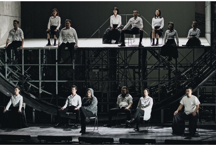 老舍戏剧节之波兰羊之歌剧团《李尔之歌》,将莎士比亚文本中李尔与考狄莉亚的悲剧因子抽离出来,重新钩织成一首幽浮在英格兰原野上的音乐长诗。把“李尔王”的故事分成十二首曲目,呜咽、悲戚、跌撞、哀号、狂野俱在,角色由音乐而非演员塑造,角色的存在亦是表达情感情绪的生发者,而由释讲者承担段落之间、舞台与观众之间的桥梁。旋律、和声、节奏、色彩(音色)更重要,通常意义上的肢体与台词只在必要时被强调。音乐的魅力,在剧场中飘飘洒洒,激发出令人着迷的情感互动。