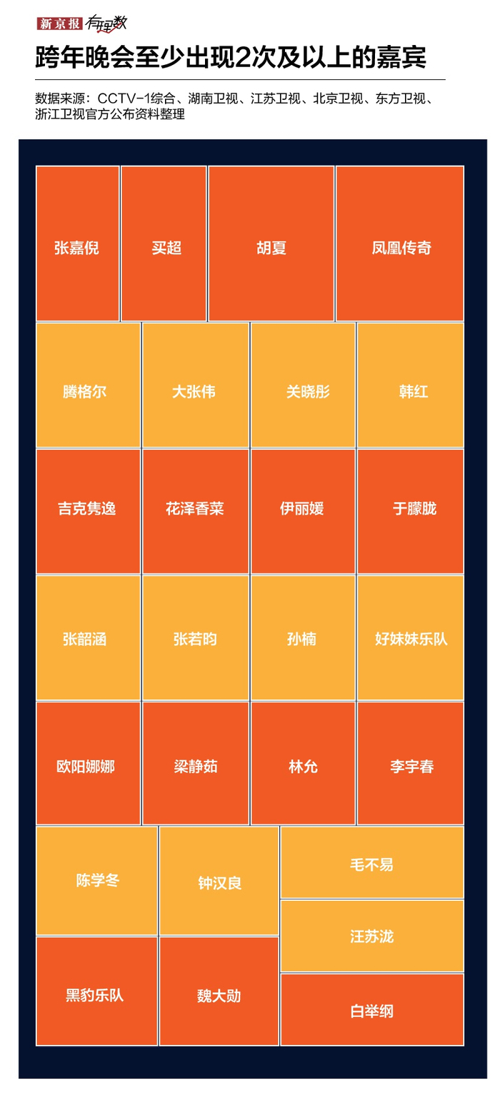 从收视情况看,跨年晚会的赢家主要是央视和湖南卫视两个。