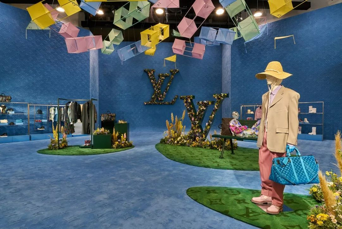 日前,路易威登2020春夏男装限时店登陆三里屯太古里北区红馆,并已全面向公众开放。此次,限时店内的活动场地的设计灵感源于2020春夏男装秀场,它采用了路易威登标志性的绿色Monogram布满墙面和地面,大型鲜花制作的LV Logo装置位于场地正中,同时搭配了绿色长椅和红色气球,使整个店面营造出一种生机盎然的气氛。