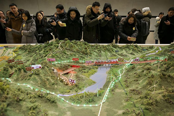 站内的京张高铁沙盘吸引不少人驻足观看。