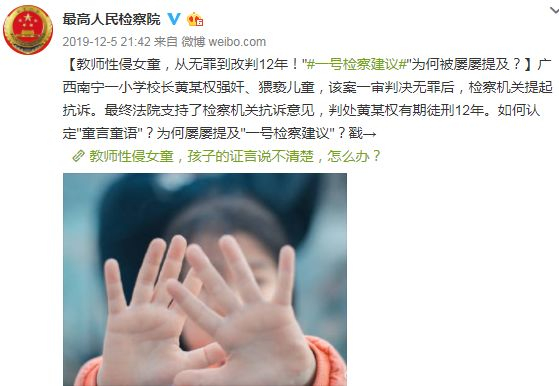 4、教师性侵两名女童被判无罪,广西南宁检察机关依据指导性案例裁判规则抗诉改判十二年
