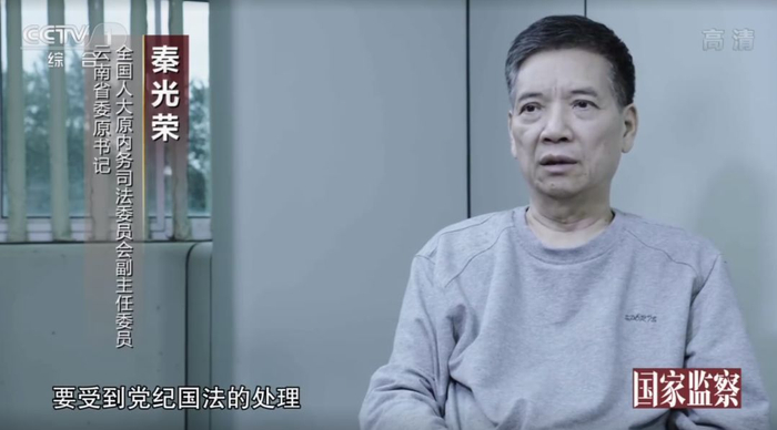 2019年10月25日,最高人民检察院发布消息称,全国人大原内司委副主任委员、云南省委原书记秦光荣涉嫌受贿一案,由国家监察委员会调查终结,移送检察机关审查起诉。日前,最高检依法以涉嫌受贿罪对秦光荣作出逮捕决定。