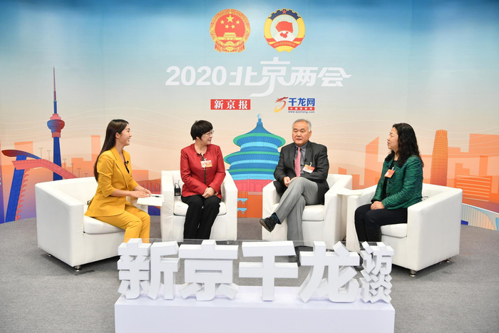 三位市人大代表做客新京千龙访谈间,就老旧小区物业管理问题进行讨论。新京报记者 吴江 摄