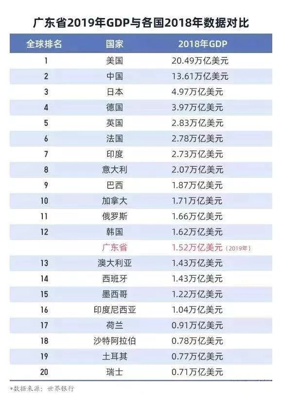 每日经济新闻(微信号:nbdnews)记者梳理2018年全球发达国家GDP总量排名后发现,在排名前20的发达国家当中,2019年广东省GDP总量竟然排在全球第13位。紧追韩国(1.62万亿美元),并且领先于澳大利亚、西班牙、荷兰、沙特阿拉伯、瑞士等众多发达国家。