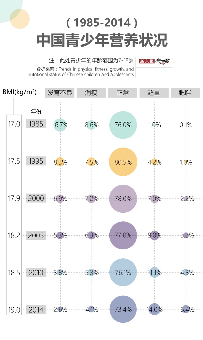 值得关注的是,中国儿童青少年体质健康的下降,与营养情况问题的显现是同时发生的。