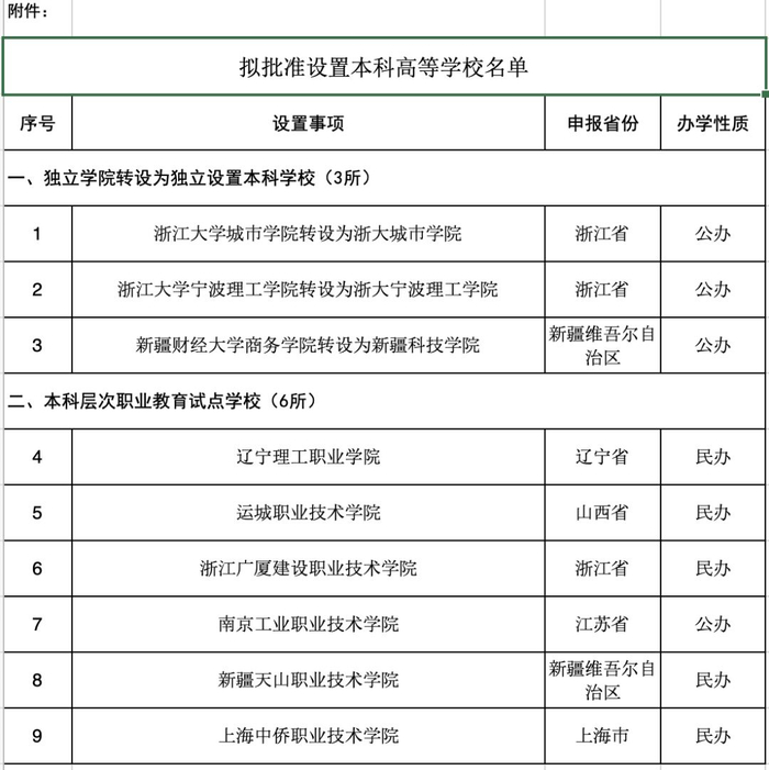 原标题:教育部正式发函,9所新本科高校来了!