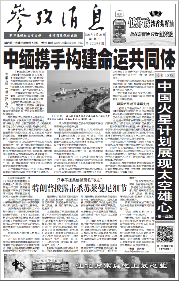 今日报纸要闻目录:1、中缅携手构建命运共同体;2、英德官员称禁用华为代价高昂;3、俄波二战历史争端愈演愈烈;4、利比亚和平会议在柏林举行;5、中国发展吸引全球顶尖设计师……