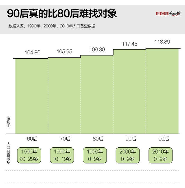 陡升的性别比,让90后男性的脱单难度系数从概率上讲要比前几代人高出很多。
