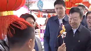 20日下午,习近平来到昆明新春购物博览会现场。场馆里人群熙熙攘攘,一派红火。看到习近平来了,大家纷纷向他问好。一位小朋友手拿传统面塑工艺品“孙悟空”,问习爷爷喜不喜欢。习近平笑着说,小的时候喜欢。