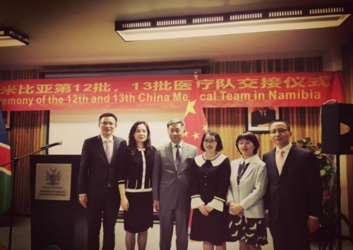 1月16日,由浙江省承派的中国第13批援纳米比亚医疗队与第12批医疗队在纳米比亚首都温得和克卡图图拉医院完成了为期一周的交接工作,中国驻纳米比亚大使张益明、纳米比亚卫生部官员、医疗机构代表等出席交接仪式。