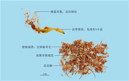 合欢花:呈卷筒状或浅槽状,粗细长短不一,长15~50cm,厚0.2~0.3cm。气微,味涩而微苦,稍刺舌,而后喉头有不适感。舒郁、理气、安神、活络、养血、滋阴肾、清心明目。主产河南、河北、陕西、江苏、浙江等地。