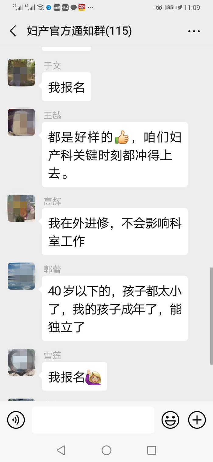 按照要求,团队成员年龄不能超过40岁,仍有“超龄”医护人员提出加入。全科医疗科主任马力称,全科只有自己不是初级职称,提出报名;妇产科医生郭蕾称,40岁以下的同事孩子都太小,自己的孩子成年能独立了,因此报名。