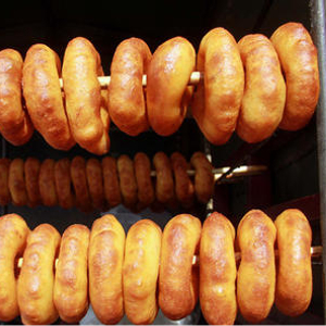 油馍馍是由白面、黄软米、小米、糖等杂粮和在一起炸制而成。圆形,环状,炸熟后,金黄似铜钱,味道香甜可口,是陕北人最喜爱的食品之一。