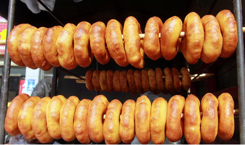 看着油馍馍在锅里打滚翻转并膨胀变成一个个色泽金黄的油圈,心中觉得无比神奇和喜悦。顺手偷拿一个烫烫的油馍馍,口齿间的香甜承包了一整天的快乐。