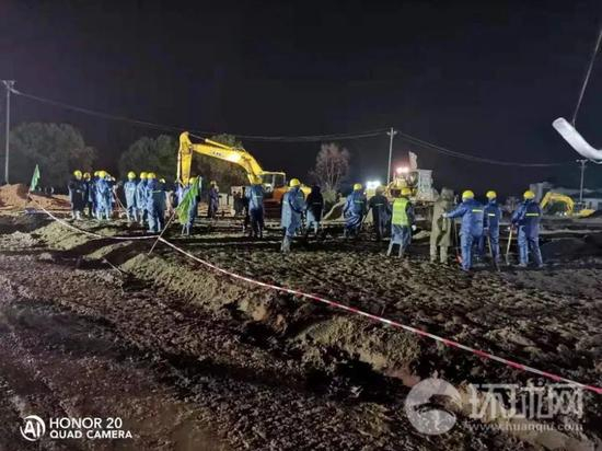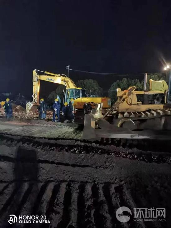 除夕夜,火神山医院施工现场灯火通明,各种机械开足马力,这是一场攻坚战,建设者争分夺秒,力争早日完工。
