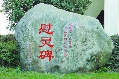 为实验动物所立的慰灵碑,大小白鼠是人类实验中最常用到的动物之一。受访者供图
