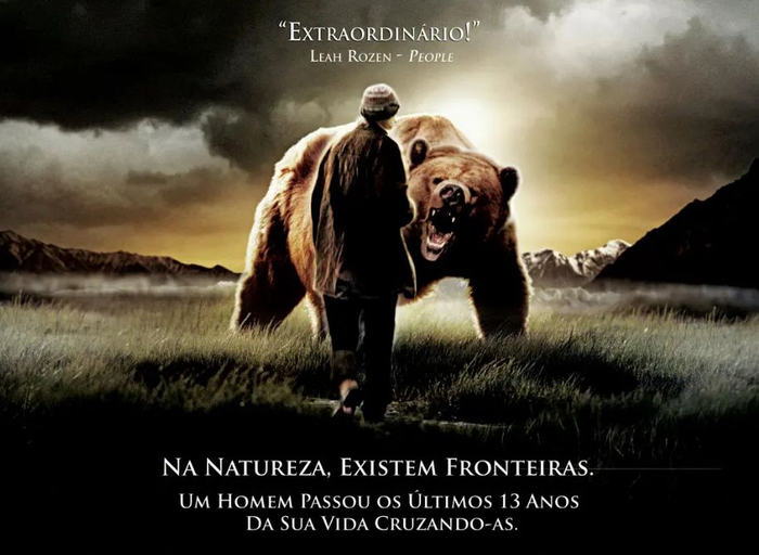 《灰熊人》是由沃纳·赫尔佐格(Werner Herzog)导演,以走进阿拉斯加荒野中与熊共舞的提摩西·崔德威(Timothy Treadwell)拍摄的影像为基础制作的荒野纪录片。提摩西·崔德威与《走进荒野》中的克里斯一样,对于当代人类社会充满了敌意,所不同的是,他不像克里斯那样优秀和富有理性,而是一个社会的真正失落者。他酗酒、吸毒、玩弄枪械,险些丧命。并且带有较强的歇斯底里的性格特点。当他走进荒野,旋即被荒野的美和灰熊的生活所吸引,在毫无戒备的情况下与灰熊一起生活了13年。