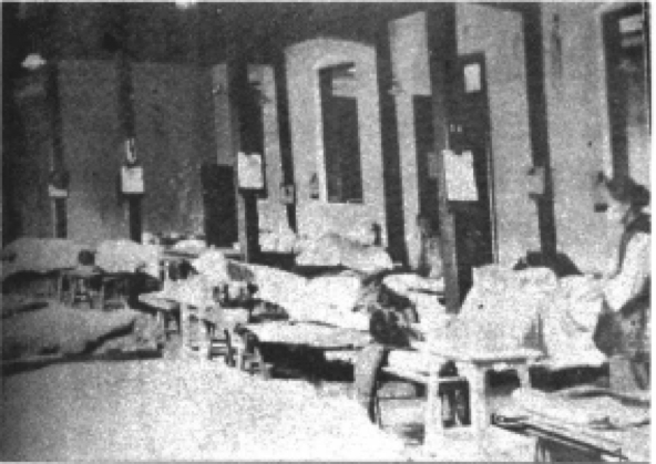 1931年的长江流域的水灾导致了1932年的霍乱大流行。上海在1932年4月26日首先发现真性霍乱病例,随后病例不断增长。上海市卫生局马上检查辖区内井水和河水,并大力推行霍乱疫苗注射。但许多地方的卫生设施和医疗条件比不上上海,霍乱就蔓延开来了。虽然卫生防疫组有许多防疫办法,比如饮水消毒、防疫宣传、推广霍乱疫苗、隔离病人等措施,但他们仅能在主要城市进行防疫。广大的农村地区基本处于自生自灭的状态。这次霍乱流行,波及长江水灾所影响不到的许多地方,许多边远地区缺乏有效的有组织的防疫措施。在西北地区,因霍乱死亡者人数极多,仅陕西省的死亡人数就有十三四万之巨。图片为上海西藏路时疫医院病房的霍乱病人,来自《中国防疫史》。