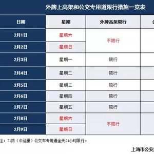 上海2月3日至7日外牌高架限行 警方:减少外出