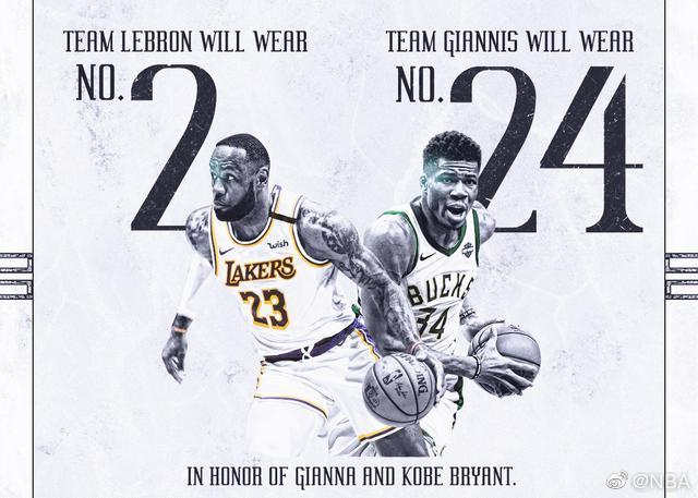 以往全明星赛期间,球员们往往身披各自球队的号码参赛,就在2月1日,据美国媒体报道,为了纪念科比及其二女儿吉安娜,全明星正赛当天,“字母哥”队和詹姆斯队将分别身穿24号球衣、2号球衣,前者阵中所有球员均身披24号,后者阵中所有球员均身披2号。