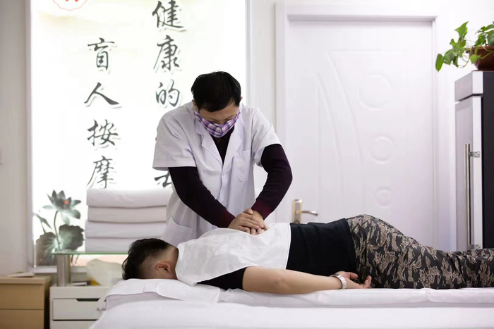 客人来了。盲人按摩师隋唐,贴着墙,摸索着走进按摩房。客人光着背,趴在房间的小床上,“师傅,拔火罐,快点哈。”