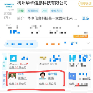 杭州华卓信息科技的高管信息,来源:天眼查