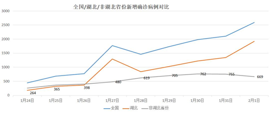 非湖北地区新增确诊病例数在降低。