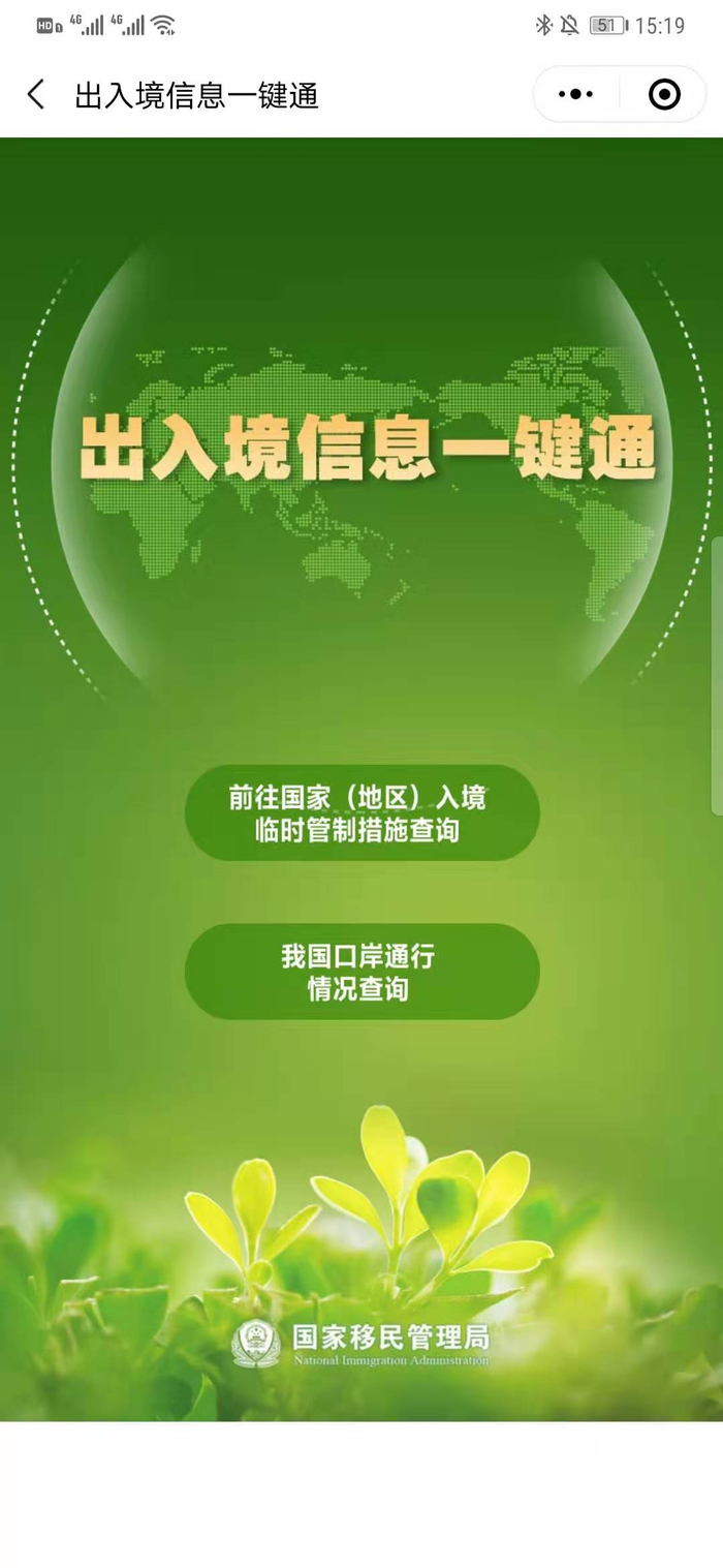 据悉,疫情防控期间“出入境信息一键通”查询服务在国家移民管理局门户网站、官方微博、微信公众号和国家移民管理局微信、支付宝小程序发布,向社会公众提供相关国家、地区在防控新型冠状病毒感染的肺炎疫情采取的临时入境管制措施和全国各口岸开放及通行时间等情况。查询人打开后可通过模糊搜索或分类检索的方式直接查询相关信息。