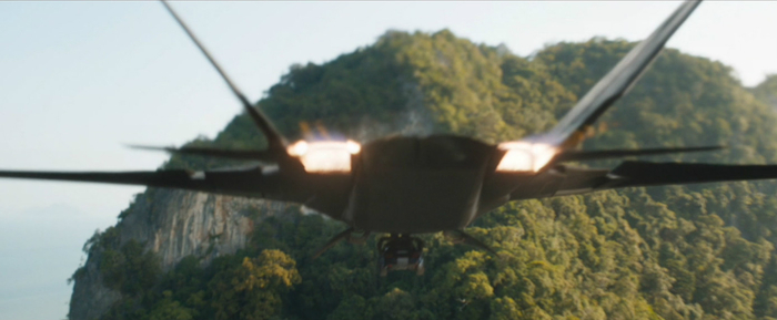 预告片中最惊险的场景是唐老大与莱蒂开车冲向悬崖,在发现桥断了之后唐老大毅然全速向前,仅凭借一根绳索将车吊起,用荡秋千的飙车方式借力“飞到”悬崖的另一端。