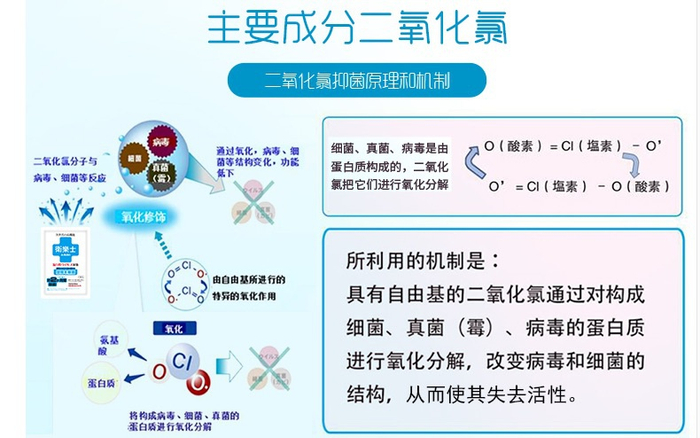 如“Bubble Baby全球母婴精品馆”宣称,具有自由基的二氧化氯通过对构成细菌、真菌、病毒的蛋白质进行氧化分解,改变病毒和细菌的结构,从而使其失去活性。