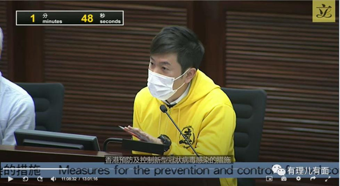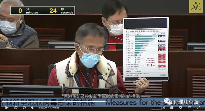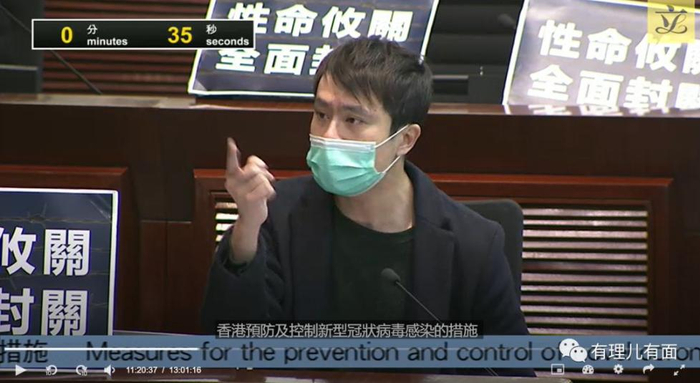 每个反对派立法会议员都在自己的桌前放了一块写有“性命攸关、全面封关”的宣传板,而发言则处处充满了侮辱攻击、毫无下限,完全偏离了会议主题,为了达到政治目的无所不用其极。