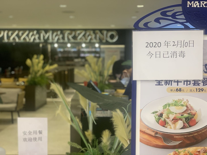 国贸地区,开业餐厅的门口均贴有“消毒”字样。新京报记者 王巍 摄