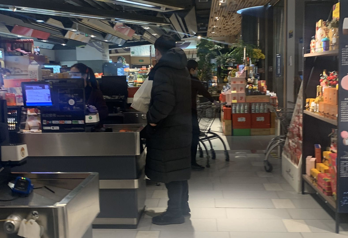 国贸某超市内,顾客戴着口罩购物。新京报记者 王巍 摄